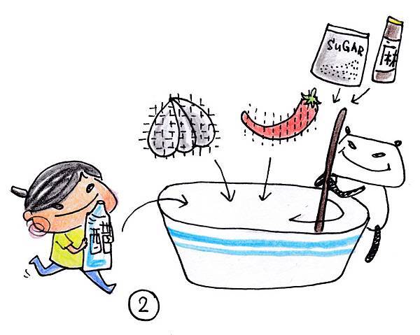 將蒜同辣椒切粒,加糖同麻油撈均佢