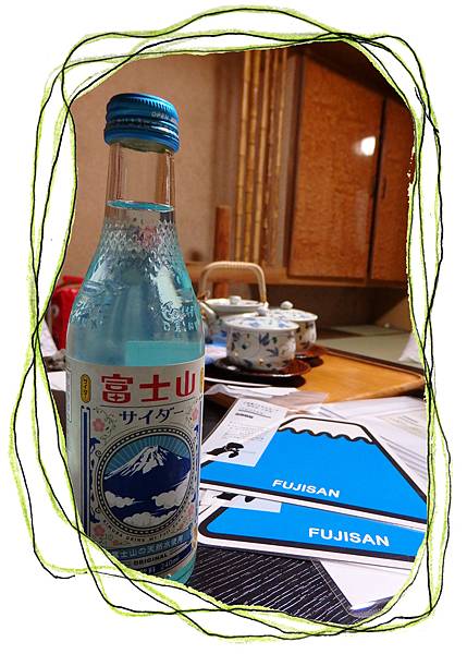 係富士山下飲住富士山汽水,再寫富士山型名信片,