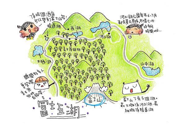 分別係河口湖, 山中湖, 本栖湖, 西湖同精進湖